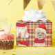 Une adorable aquarelle illustrant un Cairn Terrier, est jumelée à un arrière - plan à motifs or et rouge, et le chien porte une écharpe d'hiver rouge et un chapeau de Père Noël.