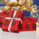 Calculatrice rouge avec texte Happy Birthday et boutons du pavé numérique noir.