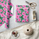 Papier Cadeau Camellias rose Fuchsia et Feuilles verts Jade