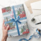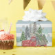 Papier Cadeau Camion de Noël rustique Arbres Bleu rayé