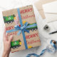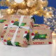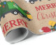Une jolie illustration d'un camion à ordures de recyclage de Noël portant un chapeau de Père Noël et décoré de lumières de Noël avec les mots "Joyeux Noël" et papier kraft brun look arrière - plan. Un papier d'emballage de Noël idéal pour les amateurs de camions à ordures, petits ou grands, les filles ou les garçons.