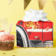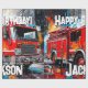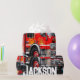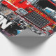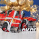 C'est un moteur à incendie de style pop-art dans un paysage urbain.