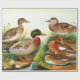 Belle plaque lithographiée couleur main de groupe de canards reposant à l'étang. numériquement amélioré pour ramener ses couleurs vives. Date d'impression 1900.