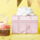 Illustration graphique d'un ruban de sensibilisation au cancer du sein rose sur emballage cadeau.