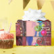 "Candyland design" Shows a gingerbread house in a chocolate mousse landscape with colorful lollipops, gummy bears, sugar canes, pralinés, cotton candy along a chocolate road.