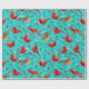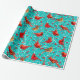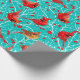 Papier Cadeau Cardinaux neigeux Baies d'hiver Noël/Cyan profond