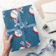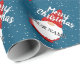 Caricature de gnome rouge mignon personnalisée sur le papier d'enveloppement de Noël. Enveloppe cadeau personnalisée imprimée avec votre texte et votre couleur. Disponible en finition mate et brillante. Drôle gnomies Roulettes de papier d'emballage de vacances pour enfants et adultes. Couleur arrière - plan bleu personnalisable avec des flocons de neige. Créez un cadeau de nature pour amis, famille, collègues, patron, employés et autres. Modèle de typographie de script de brosse élégant pour votre message. Troll avec casquette rouge et longue barbe.