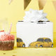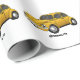 Une voiture classique jaune joyeuse. Dessiné dans un style de dessin animé amusant.
