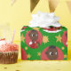 Papier d'emballage de Noël avec l'illustration d'un bébé afro-américain souriant mignon tenant un cadeau de Noël ; dans un cercle rouge sur un arrière - plan vert étoilé, un design de vacances de Noël avec un modèle texte modifiable pour votre nom ou message