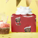 Enveloppant du papier avec l'illustration d'une mignonne fille afro-américaine souriante aux longs cheveux noirs, la fille porte un costume de Santa Clause avec un casquette rouge et tenant un cadeau ; dans un cercle rouge sur un arrière - plan rouge, avec un modèle texte modifiable pour votre nom ou message