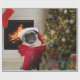 Papier Cadeau Carlin Misha portant un arc pour Noël