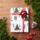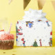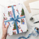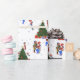 Caroleurs et arbres de Noël Enveloppement Le papier est un motif de caroleurs festifs entourant un sapin de Noël et représenté contre un arrière - plan blanc aux taches vertes et rouges. Très festif et amusant !
