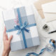 Papier Cadeau Carré de plaid rustique de ferme bleu gris