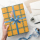 Papier d'emballage à carreaux moutarde et sarcelle