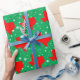 Célébrez les vacances dans le style texan avec ce enveloppement cadeau qui présente une carte rouge de l'état de l'étoile solitaire avec des flocons de neige contre un arrière - plan vert.