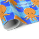 Un mignon poulpe orange. Motif bleu plaid dans l'arrière - plan. Petits rouleaux de papier d'emballage animal. Modifiez le nom pour customiser. Décor de fête et idée cadeau pour les enfants.