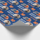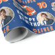 Casque de balle de football Dessin photo Anniversaire papier enveloppant. Envelopper cadeau d'anniversaire de football moderne et amusant. Avec une illustration audacieuse d'un football et d'un casque en orange et bleu. Ajoutez votre photo, nom et âge.