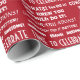 La typographie blanche exprime divers messages de félicitations sur ce papier d'emballage amusant. Le texte est placé sur un arrière - plan rouge vif. Une ligne est un modèle, vous pouvez donc le modifier pour personnaliser le papier avec le nom du destinataire, si vous le souhaitez. Parfait pour les diplômes ou autres occasions spéciales.