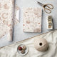 Elegant celestial botanical pattern wrapping paper featuring moons, stars, planets, mystical eyes, and delicate leafy branches in a minimal black and cream style. Ideal for astrology lovers, spiritual seekers, nature enthusiasts, and anyone who loves boho celestial aesthetics.