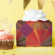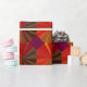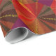 Ce papier d'emballage saisissant présente un motif extensible d'un design abstrait géométrique décoratif. Les couleurs brillantes du rouge, de l'orange, de l'or, du brun, du jaune, du marron et du vert convergent au centre dans un motif vortex. Le cercle central a des triangles répétitifs ressemblant à des textures tissées diverses.