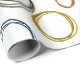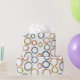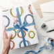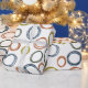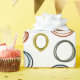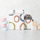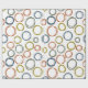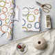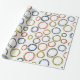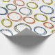 Ce papier d'emballage a un design Boho de cercles qui se chevauchent sur des tons rétro de vert, brun, bleu et gris.