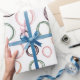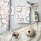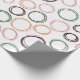 Ce papier d'emballage a un design Boho de cercles qui se chevauchent sur rose rétro, violet, vert mousse, et orange caramel.