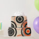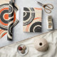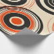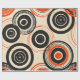 Cette oeuvre présente un motif saisissant de cercles concentriques de différentes tailles, disposés à travers un arrière - plan crème neutre. Le design intègre des teintes audacieuses de noir et d'orange, créant un fort contraste visuel qui capte immédiatement l'attention. Les cercles sont superposés et interconnectés, certaines lignes apparaissant dessinées à la main, ajoutant une sensation dynamique et légèrement irrégulière à la composition. La répétition de formes circulaires et la palette de couleurs rétro évoquent un sens du design moderne du milieu du siècle, donnant à l'oeuvre une qualité intemporelle et ludique.