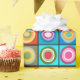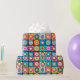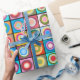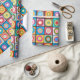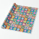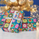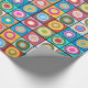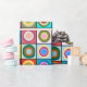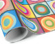 Ce papier d'emballage a un design inspiré de Kandinsky de cercles concentriques dans de nombreuses couleurs différentes qui se répètent à travers le design.