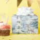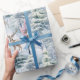 Papier Pastel Bleu Enveloppant De Cerfs De Bois Dans Les Arbres Couverts De Neige