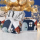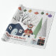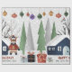 Papier Cadeau Cerf d'hiver, arbres et maison Vacances de Noël