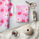 Voici de mignonnes cerises avec des arcs et des fleurs rétro blanches sur arrière - plan rose. C'est du papier d'emballage mignon pour les filles anniversaires avec thème cerise ou preppy