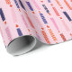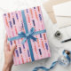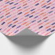 Des illustrations de bougies d'anniversaire en orange, rose et violet sont placées contre un arrière - plan rose pâle sur ce joli papier d'emballage cadeau d'anniversaire pour filles à motifs.