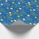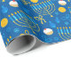 Papier Cadeau Chanukah Menorah Gelt Dreidel Bleu