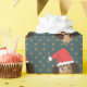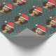La peau Brown avec les cheveux naturels porte un chapeau de Père Noël rouge sur son afro. Elle est sur un arrière - plan turquoise foncé avec des pois bruns. Papier d'emballage parfait pour ce cadeau spécial et personne.