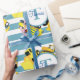 Papier Cadeau Chariots de construction Bleu rayures Monogramme