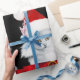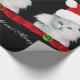 PAPIER CADEAU CHAT DE NOËL BLANC, CASQUETTE SANTA CLAUS ET RIBBO
