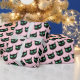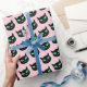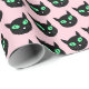 Papier Cadeau Chat noir aux yeux verts sur rose pastel