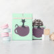 Conception mignonne d'un chat noir se reposant dans une tasse. Pâlissez - le vert. Art et conception de Mira