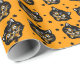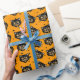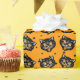 Papier Cadeau Chat noir Halloween souriant Face Orange Étoiles