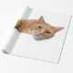 Portrait d'un tabby orange chat domestique shorthair posé sur un arrière - plan blanc avec patte drapé sur une table