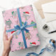 Papier Cadeau Chats de Noël mignons sur rose clair
