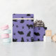 Ce papier d'emballage cadeau présente un mignon motif de chats noirs et d'empreintes de pattes sur un arrière - plan violet, parfait pour les cadeaux d'Halloween à donner pour un amoureux des chats noir.