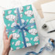 papier d'emballage cool imprimé partout avec des casquettes de chef blancs sur un arrière - plan bleu aqua. Parfait pour les cuisiniers, cuisiniers, boulangers et tous ceux qui aiment la cuisson et la cuisine