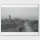 Petit chemin qui mène à la plage par un épais brouillard. Photographie noir et blanc.