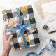 Papier Cadeau Chèques de bisons blancs noirs et fleurs jaunes