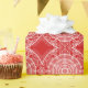 Ce mandala blanc est assis sur un arrière - plan rouge vif. La couleur est énergique et chaude. Une partie de la collection Hyil Mandala.