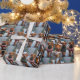 This festive design captures the joyful spirit of the holiday season, featuring an adorable dogs.Nestled in a winter wonderland, complete with a decorated Christmas tree, and beautifully wrapped presents. Snowflakes gently fall, adding a magical touch to the scene, while the vibrant colors of the holiday decorations create a warm and cheerful atmosphere.