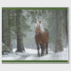 Papier Cadeau Cheval Brown dans une forêt d'hiver avec chute de