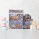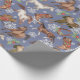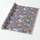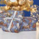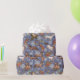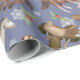 Un papier d'enveloppement de Noël occidental en bleu avec des chevaux, des bottes, des flocons de neige et des selles