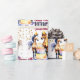 Les chevaux élégants en or casquette de fête arrosent heureux anniversaire personnalisées enveloppé cadeau d'anniversaire.